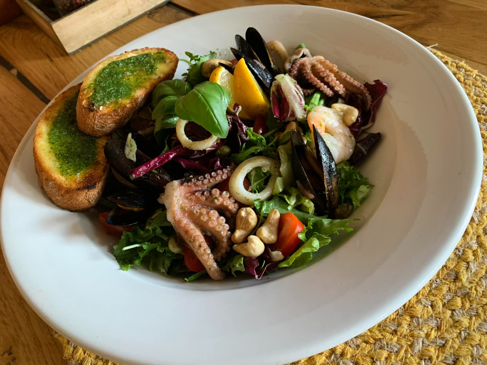 4. Il mare: mix sałat, grillowane krewetki, oliwki, pomidory koktajlowe, parmezan,