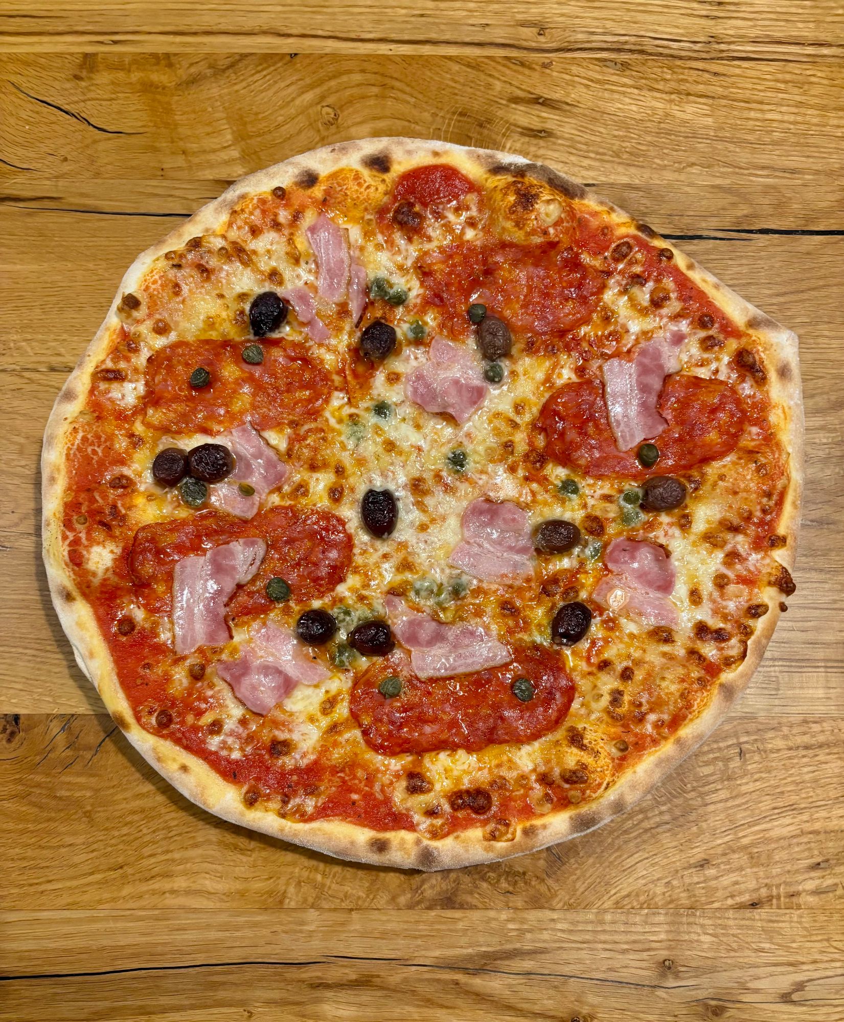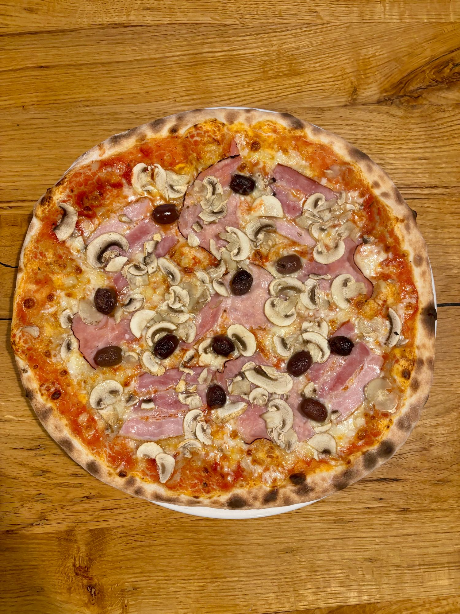 27. Vezuvio: boczek, szynka, pieczarki, oliwki