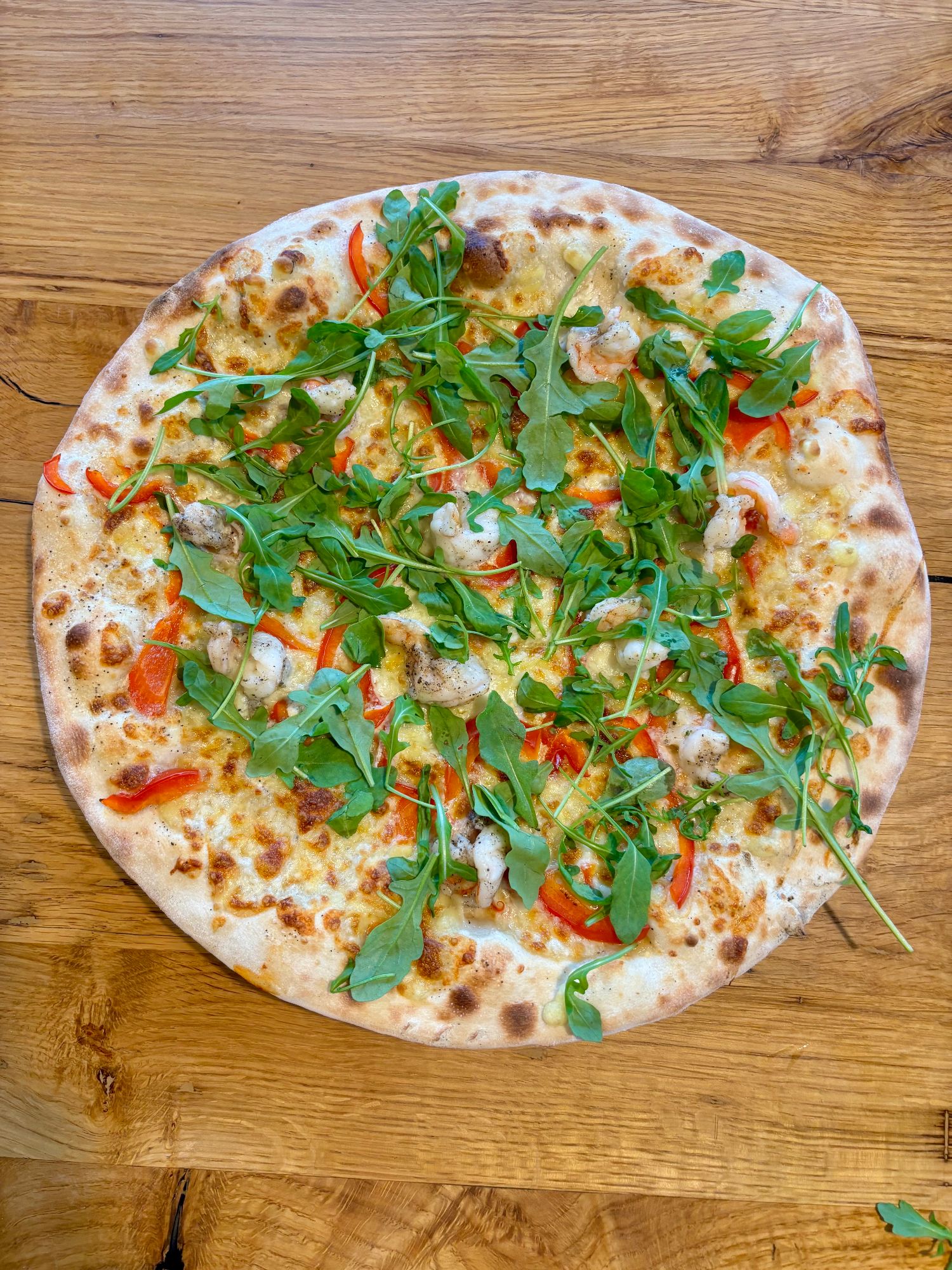 22. Bianca: krewetki, papryka, czosnek, rukola, biały sos